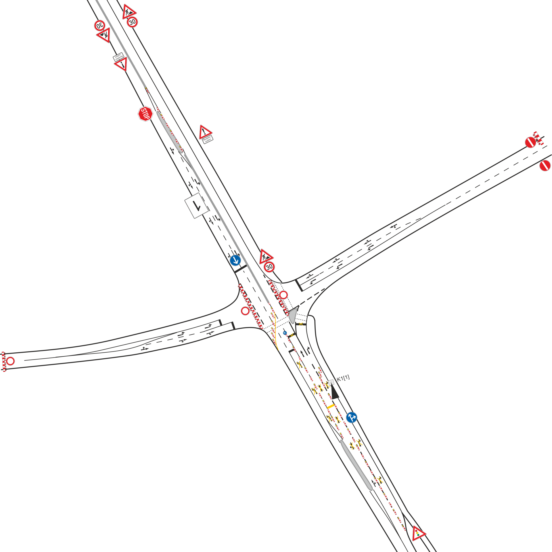 Fahrbahnmarkierung, Leitkegel, Bodenschwellen, Absperranhänger u.v.m.